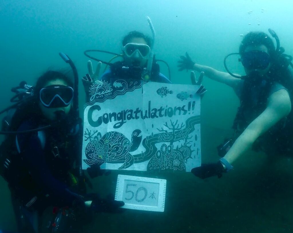 Juaをキッカケにダイバーとなり、50diveや100dive、それ以上の記念ダイブをお祝いすることも年々増え