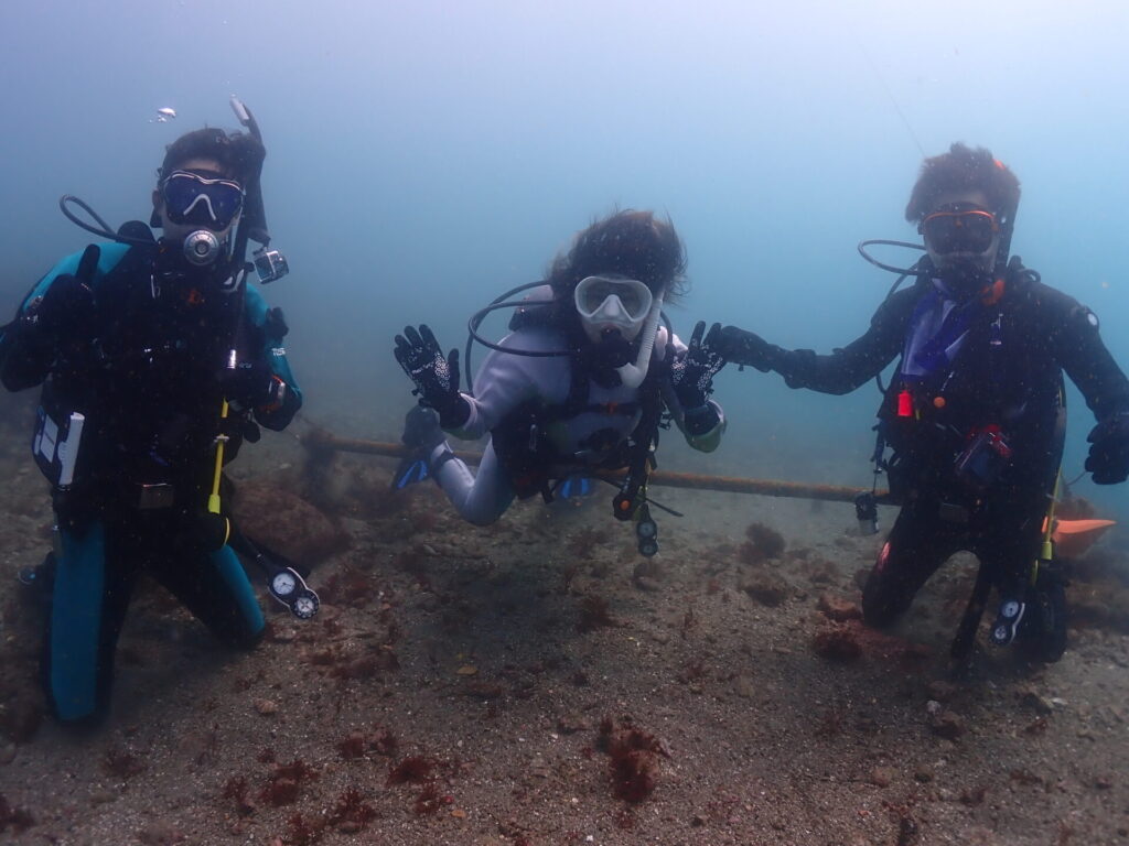 スポーツダイバー(30m)講習のYちゃん、上級ライセンス取得中のKっぺさん、取得済みのTっつん!