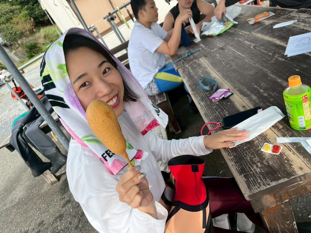 (ヘアケアされながら1本目のダイビングを終えて休憩中のお客様です!)