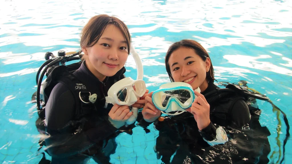 まずは水中で呼吸する新鮮さを味わう事から始めます。海で行う講習をまずは天候に左右されない室内プールを利用して丁寧に講習して海講習へ自信を付けていきましょう!
