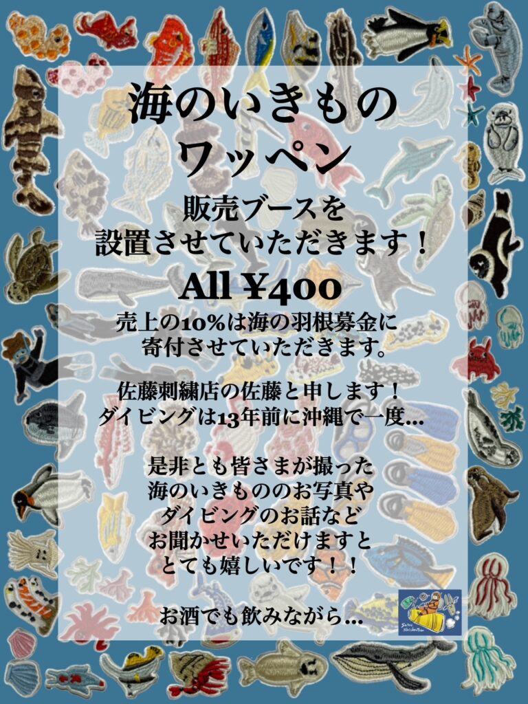 イベント会場にはJuaで販売しているワッペンを製作しているワッペン屋さんもブース出店されます!海のいきものワッペン以外にも素敵なワッペンがあるみたいです!!お楽しみに〜🙌