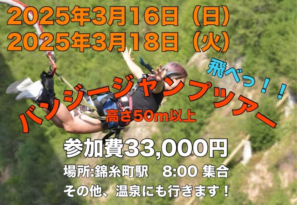 3月16日(日)&18日(火)★バンジージャンプツアー★